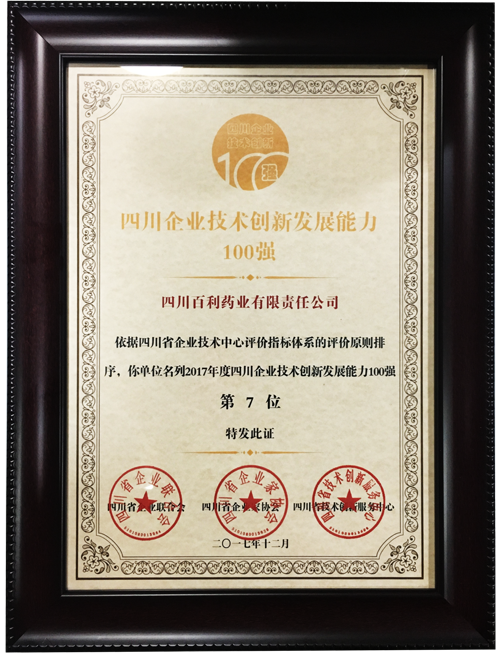 ★    四川企业技术创新发展能力100强    ★