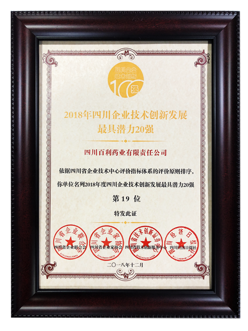 • 2018四川企业技术创新发展最具潜力20强