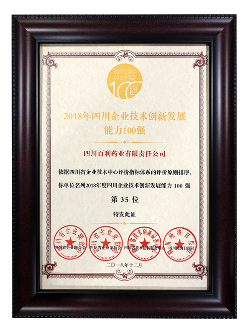 • 2018四川企业技术创新发展能力100强